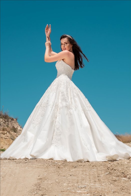 Nefes kesici, eşsiz bir model! Straplez yaka görünümlü A Prenses model gelinlik yeni nesil tasarım çizgisiyle yorumlanarak gelin adaylarının gönüllerinde yerini alması için tasarlandı. Bu eşsiz modelin omuzları ortaya çıkaran sivri detayları, kırlangıç yaka ile bütünleşiyor ve Feminen bir duruşa imza atıyor. Sırt dekoltesinin yaka tipine uyumlu şekilde tasarlanması omuz bölgesinin seremonisine eşlik ederek gelinliği tamamlıyor.
